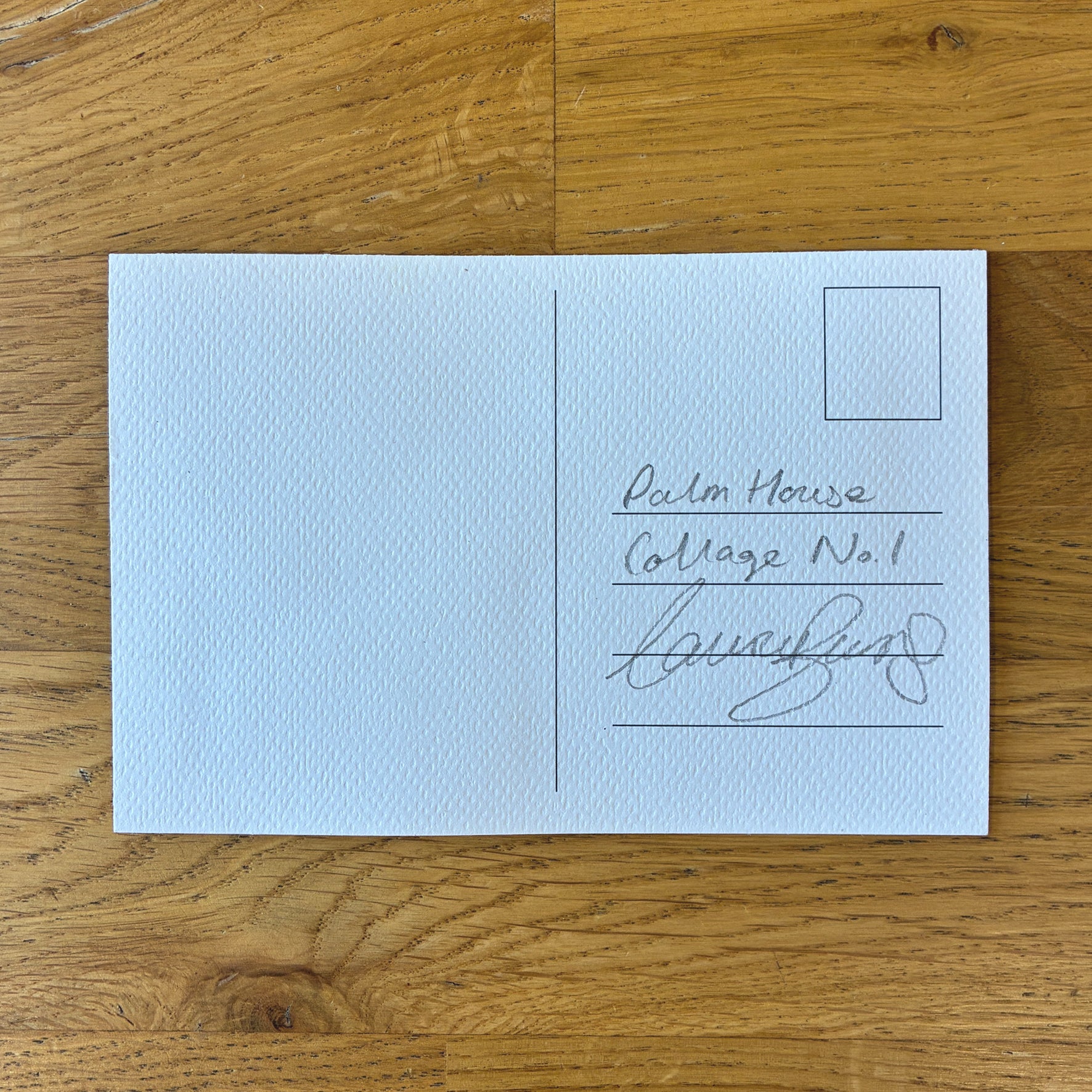 This A6 postcard features an intricate paper cut-out artwork inspired by Kew Gardens, showcasing detailed botanical elements. Each postcard is signed on the back.