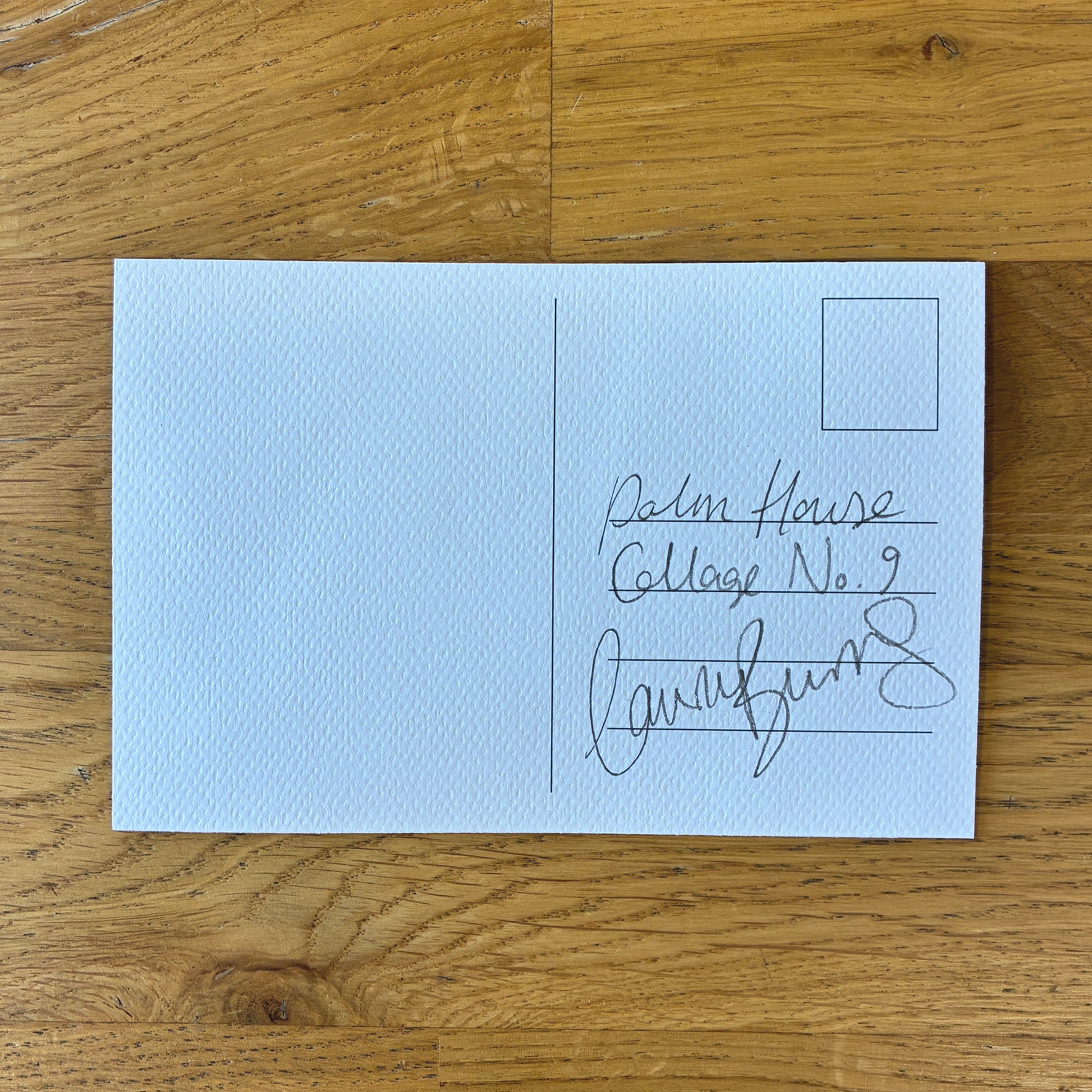 This A6 postcard features an intricate paper cut-out artwork inspired by Kew Gardens, showcasing detailed botanical elements. Each postcard is signed on the back.