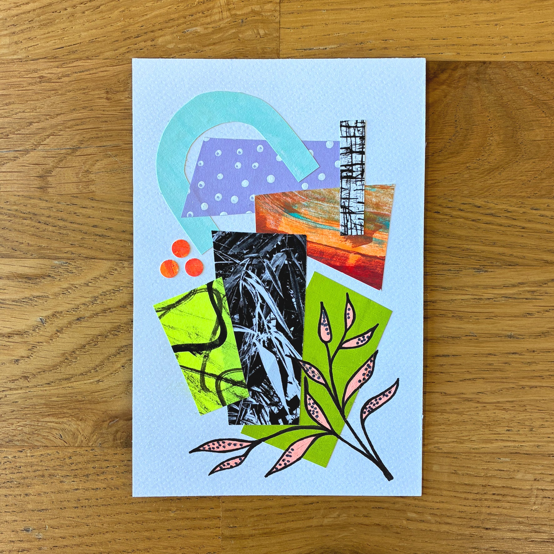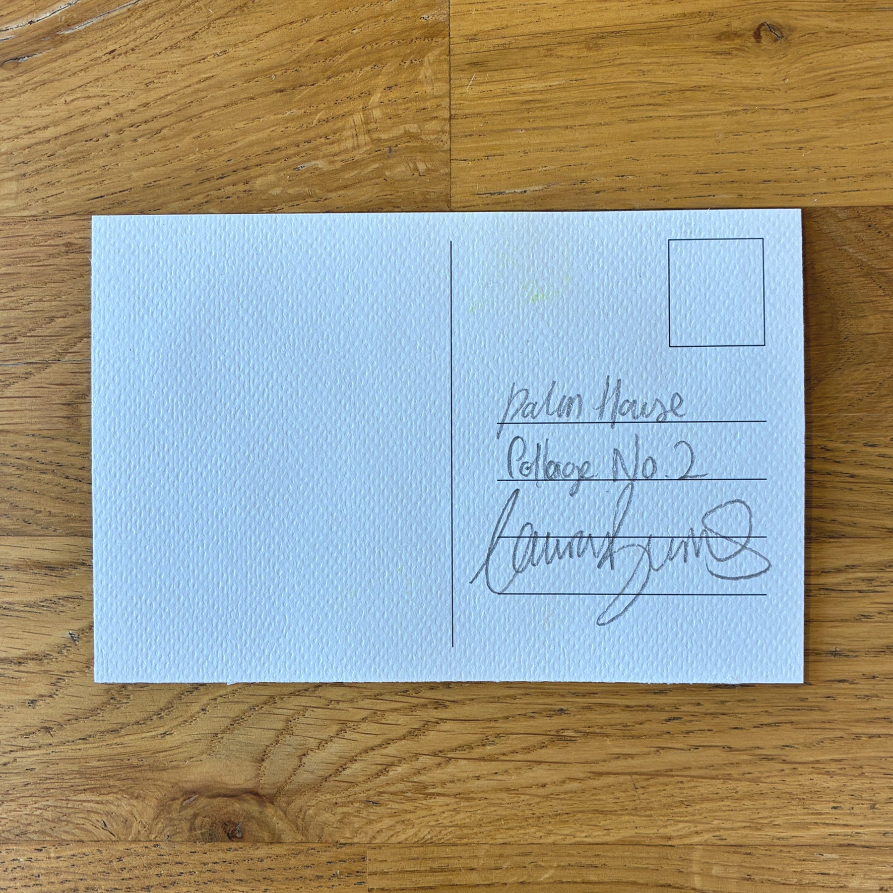 This A6 postcard features an intricate paper cut-out artwork inspired by Kew Gardens, showcasing detailed botanical elements. Each postcard is signed on the back.