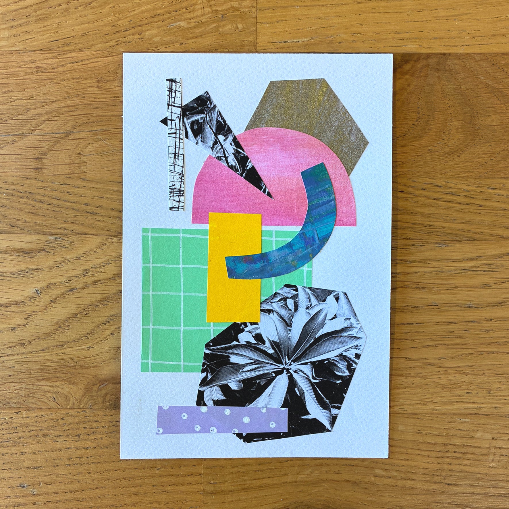 This A6 postcard features an intricate paper cut-out artwork inspired by Kew Gardens, showcasing detailed botanical elements. Each postcard is signed on the back.